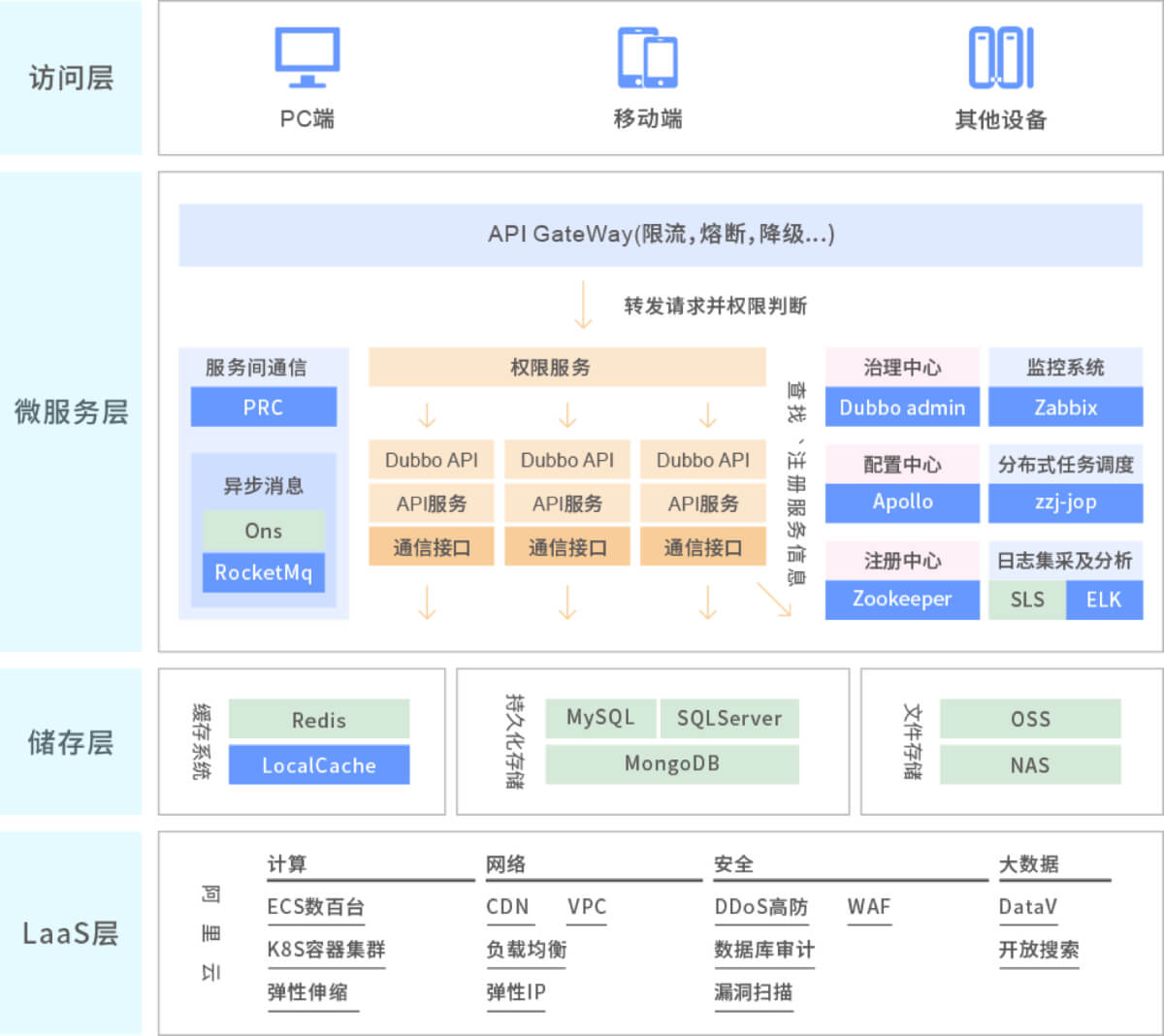 公司主要使用阿里云为基础云服务提供商,并基于阿里技术栈为主搭建平台技术架构体系。